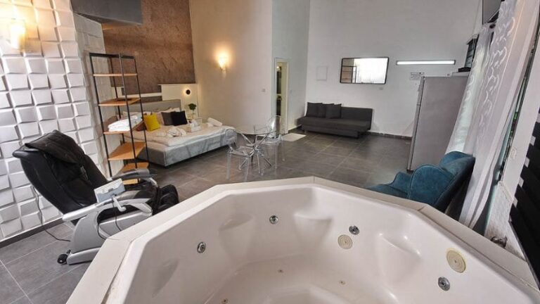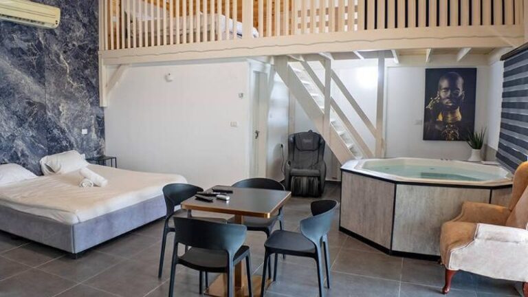 ג׳קוזי עיסוי מפנק בתוך החדר וגם בחצר, מעניק חוויה ייחודית של רוגע, בריאות ורגעים רומנטיים.