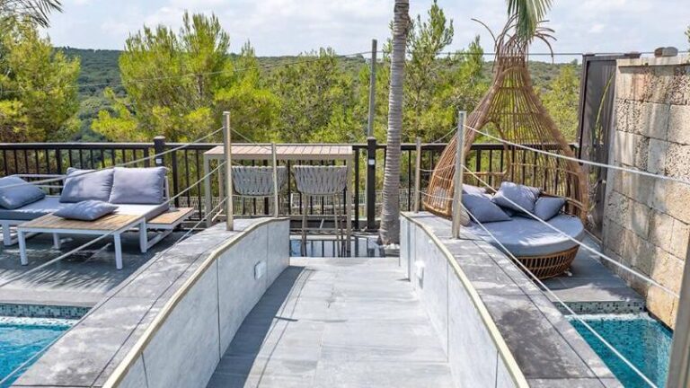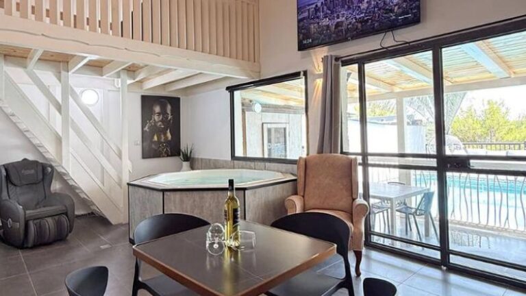 סוויטת בוטיק 3 משלבת יוקרה ונוחות עם בריכה פרטית מחוממת ומקורה, ג’קוזי עיסוי פרטי ומרפסת מרווחת מול נוף גלילי פתוח.